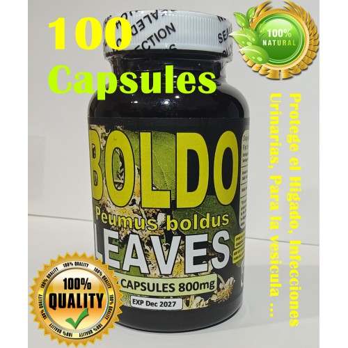 Boldo,Hojas de Boldo,Boldo leaves, Peumus boldus, Boldo leaf 100 Capsules