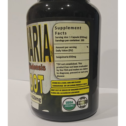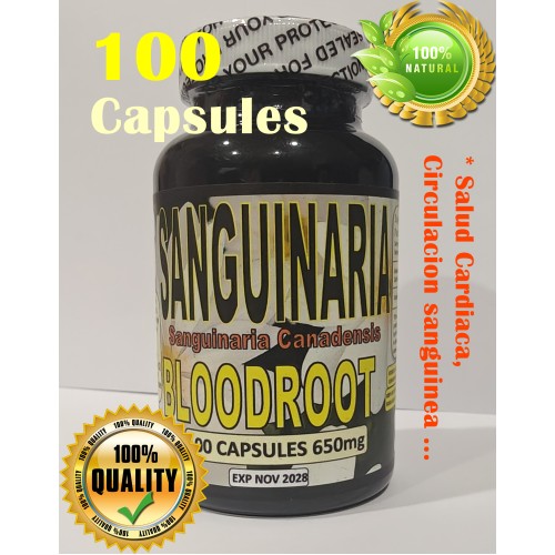 Sanguinaria 100 Capsulas,Blood root,Coon Root,Sanguinaria canadensis 100 organic Herbal Capsules